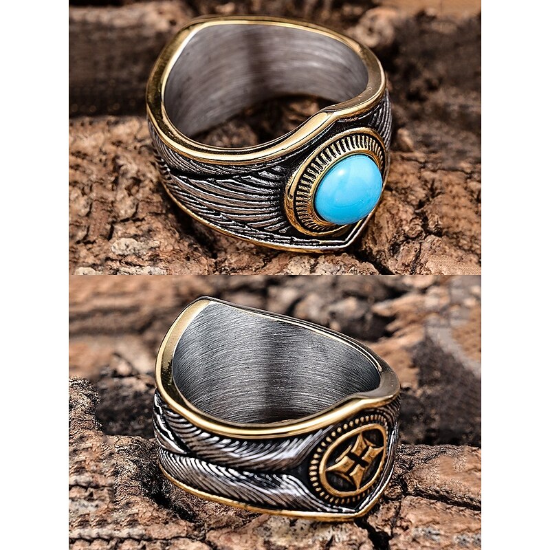 Men's Vintage Turquoise Stainless Steel Ring – Bohemian Tribal Style Statement Jewelry for Casual Wear, Music Festivals or Gifts 11