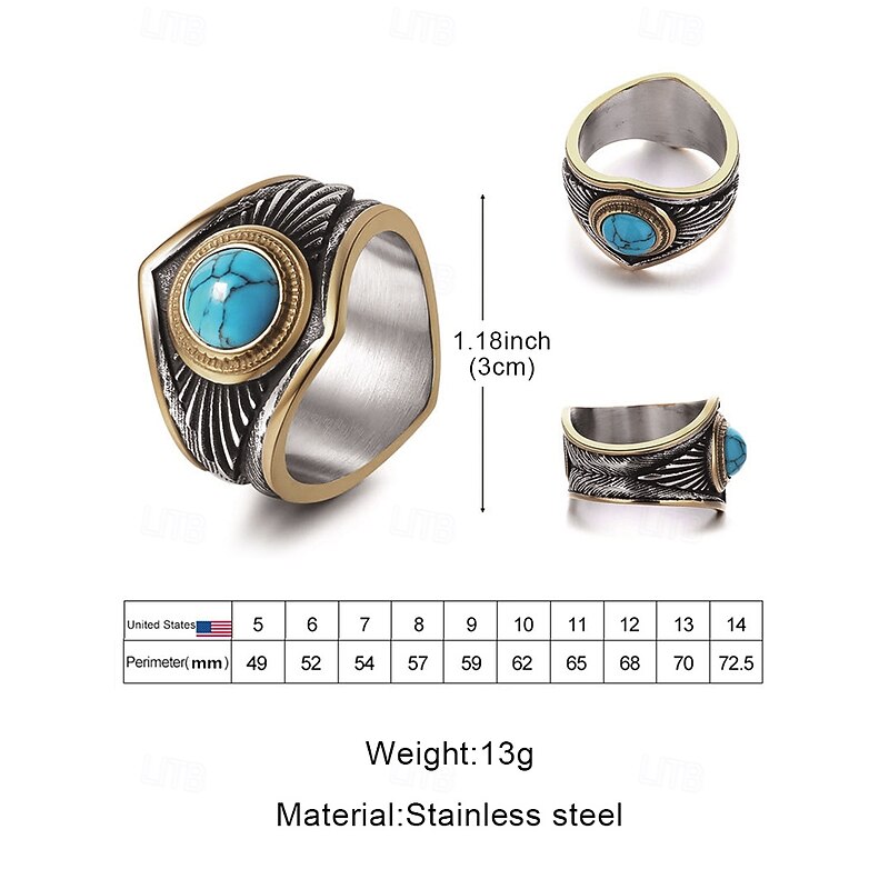 $14.99 - Men's Vintage Turquoise Stainless Steel Ring – Bohemian Tribal Style Statement Jewelry for Casual Wear, Music Festivals or Gifts 2025. Shop for cheap Men's Jewelry online? Buy at lightinthebox.com on sale today!