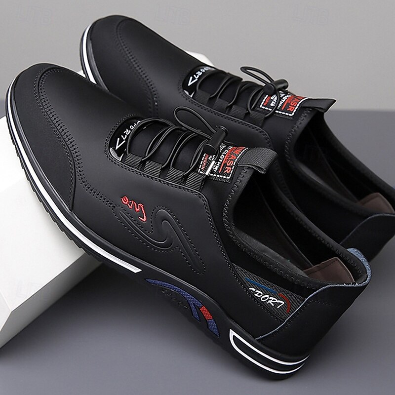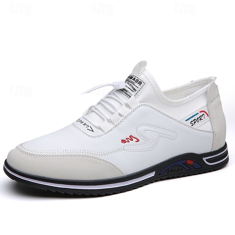 HOT ! Men's White Faux Leather Casual Sneakers – Lightweight Breathable Low-Top Shoes for Daily Wear, Walking and Travel