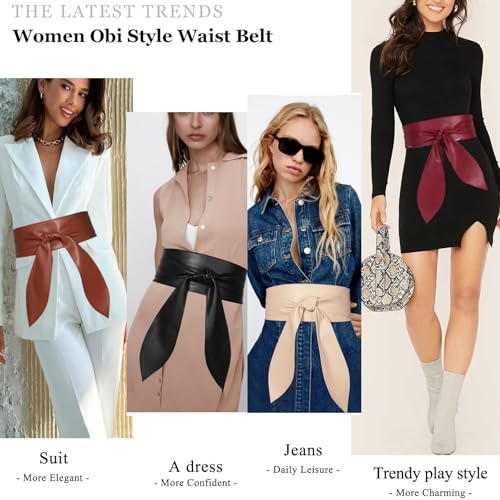 • Wrap Belts for Women Design: Solid color women leather obi belt is a perfect addition to any dress. Suitable for your evening dresses, shirts, skirts, coats or sweaters in different seasons, make your outfit look unique and elegant.Simple and fashion design will add more highlights on your outfits.