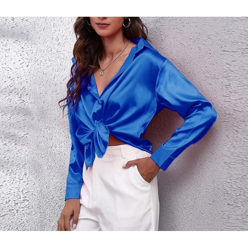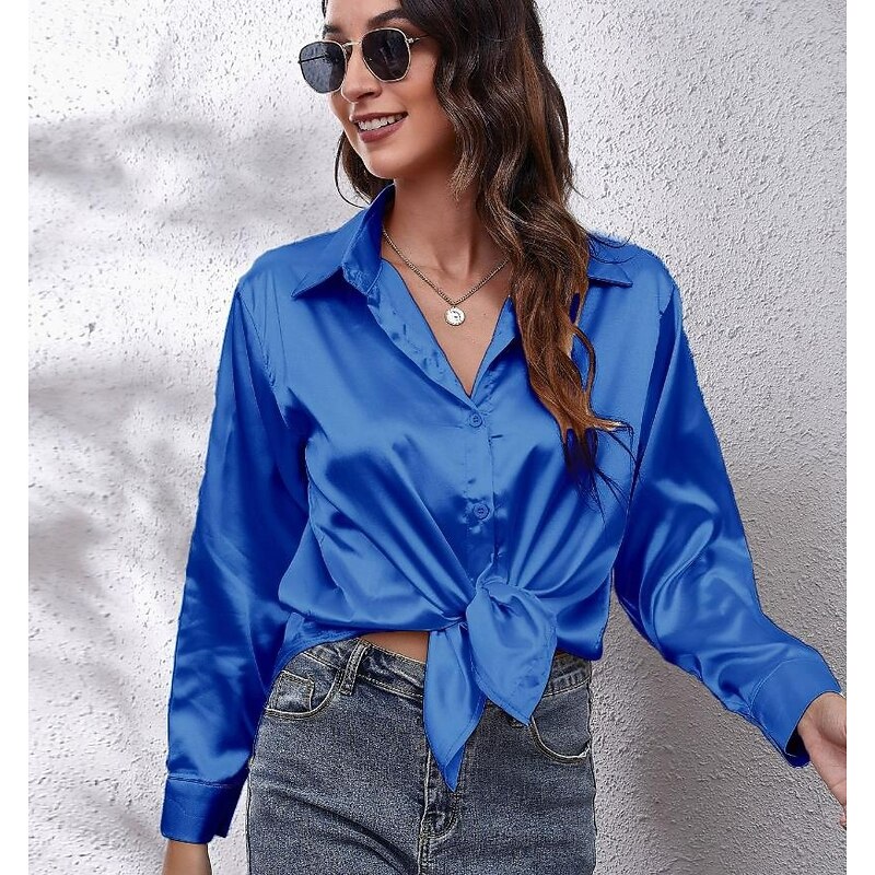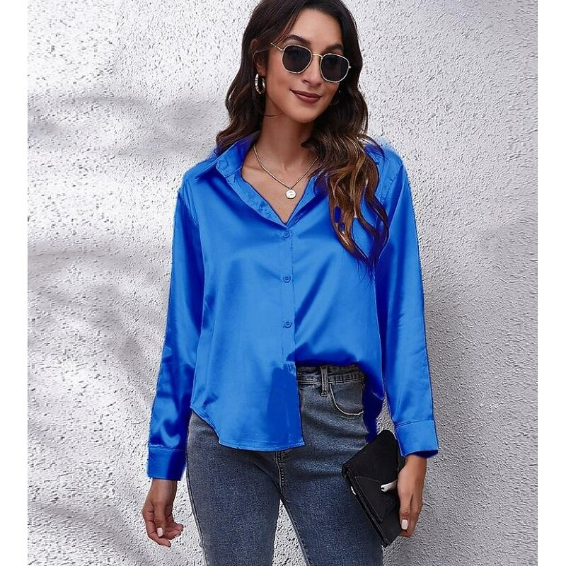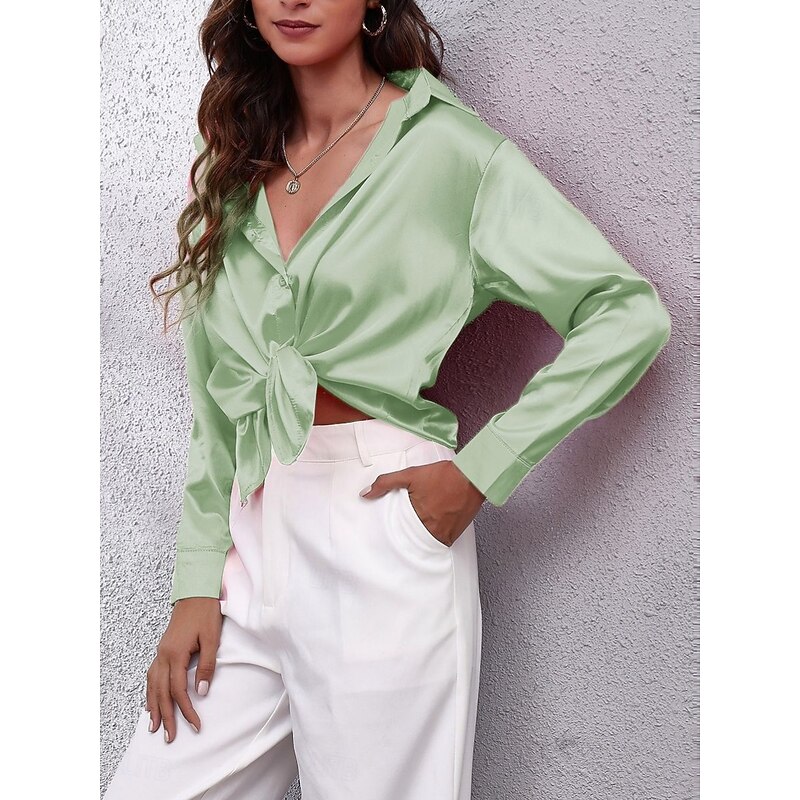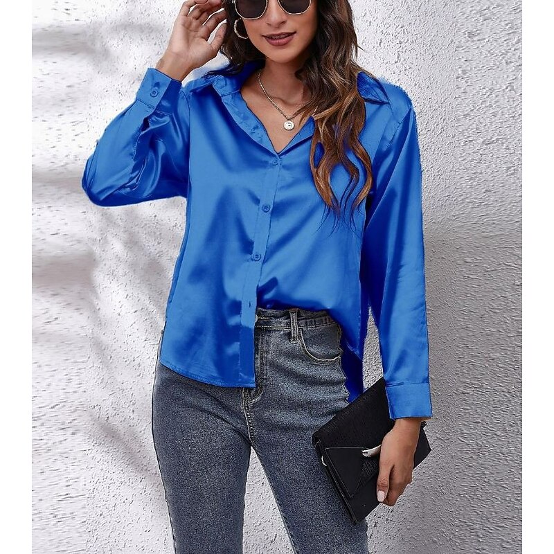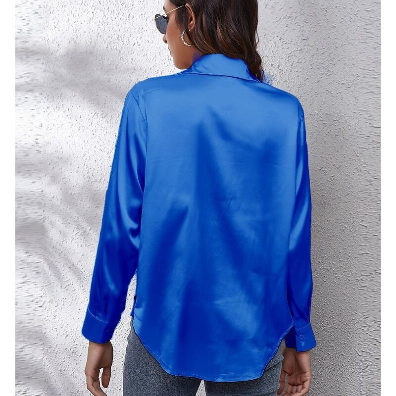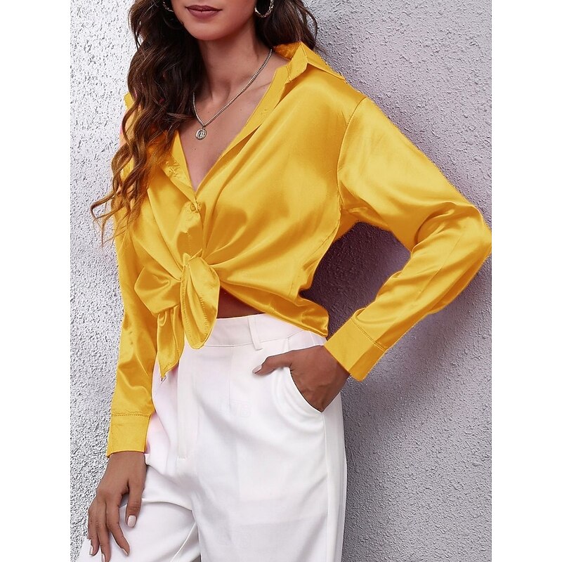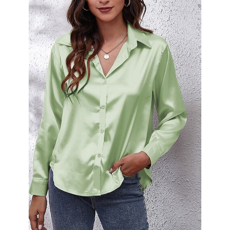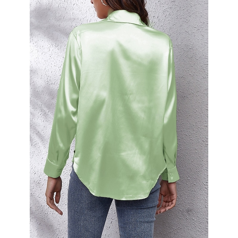 More information about Women's Shirt Elegant Dressy Satin Solid Color Business Modern Casual Long Sleeve Shirt Collar Regular Tops Work Formal Wear Buttons Yellow Pink Wine Blue Green Summer Spring