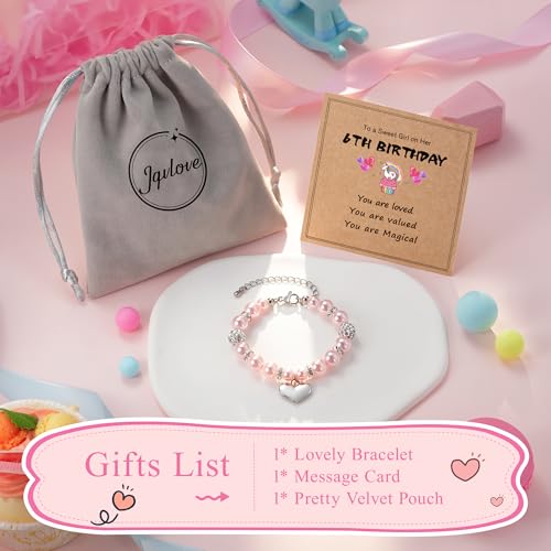 • 【Gifts For 6 Year Old Girl】--Whether she's your daughter,granddaughter, niece, cousin, or goddaughter,this happy 6th birthday Pink pearl with heart-shaped pendants bracelet, it stands out among 6 year old girl gifts and 6 year old girl toys, offering lasting beauty and sentiment, surprise your little princess with this cherished birthday gifts for 6 year old girl, a truly special alternative to to your little princess for 6 year old girl birthday gift, also makes a wonderful Christmas gift.