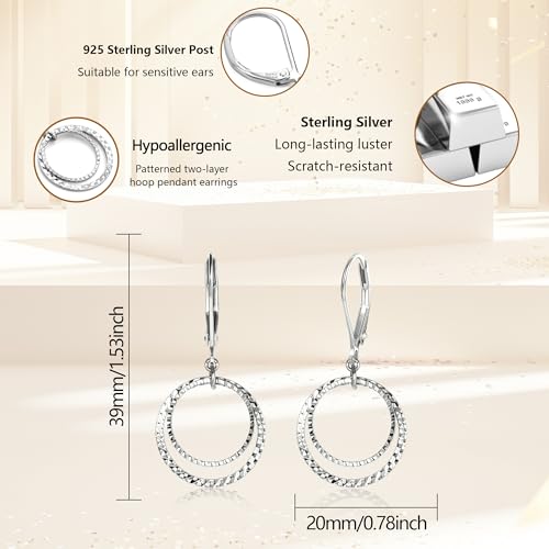 Sterling Silver Circle Leverback Earrings for Women Gold and Silver Circle Textured Drop Dangle Earrings Jewelry Hypoallergenic Hammered Leverback Sterling Silver Dangle Earrings for Jewelry Gifts 5