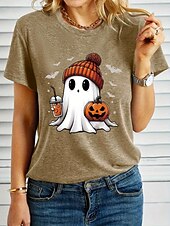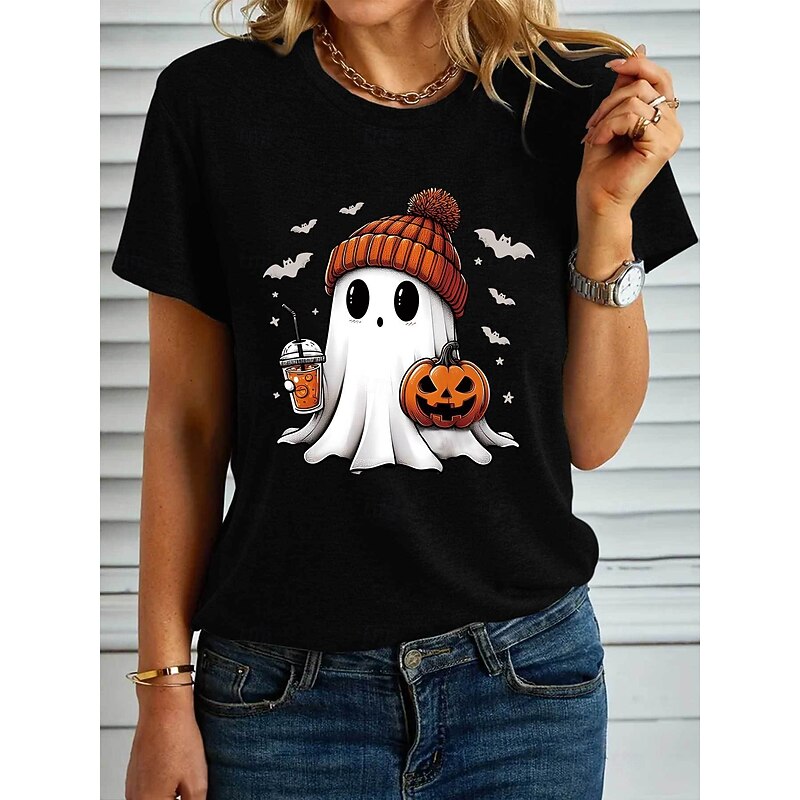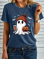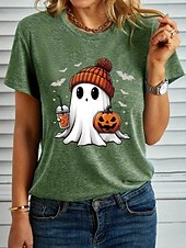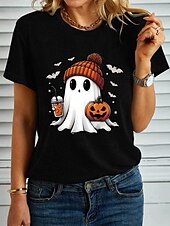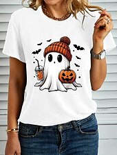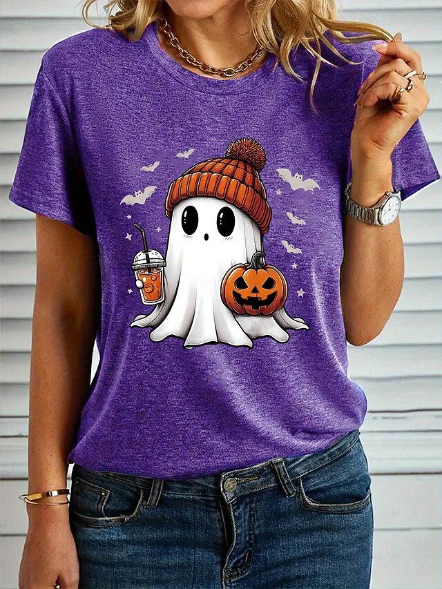 More information about Halloween Women's T shirt Ghost Graphic Pumpkin Vintage Stylish Classic Short Sleeve Crew Neck Regular Tops Daily Weekend Print Black White Blue Purple Green Summer Fall