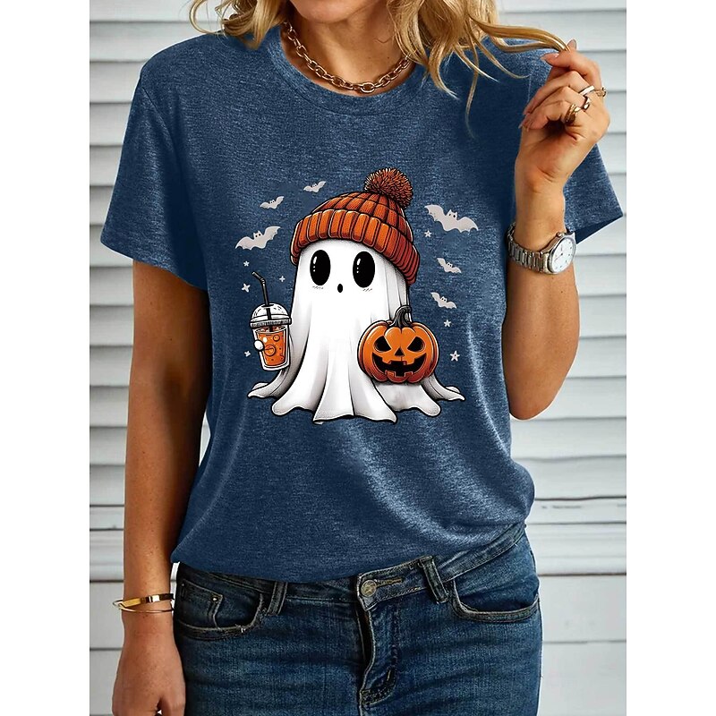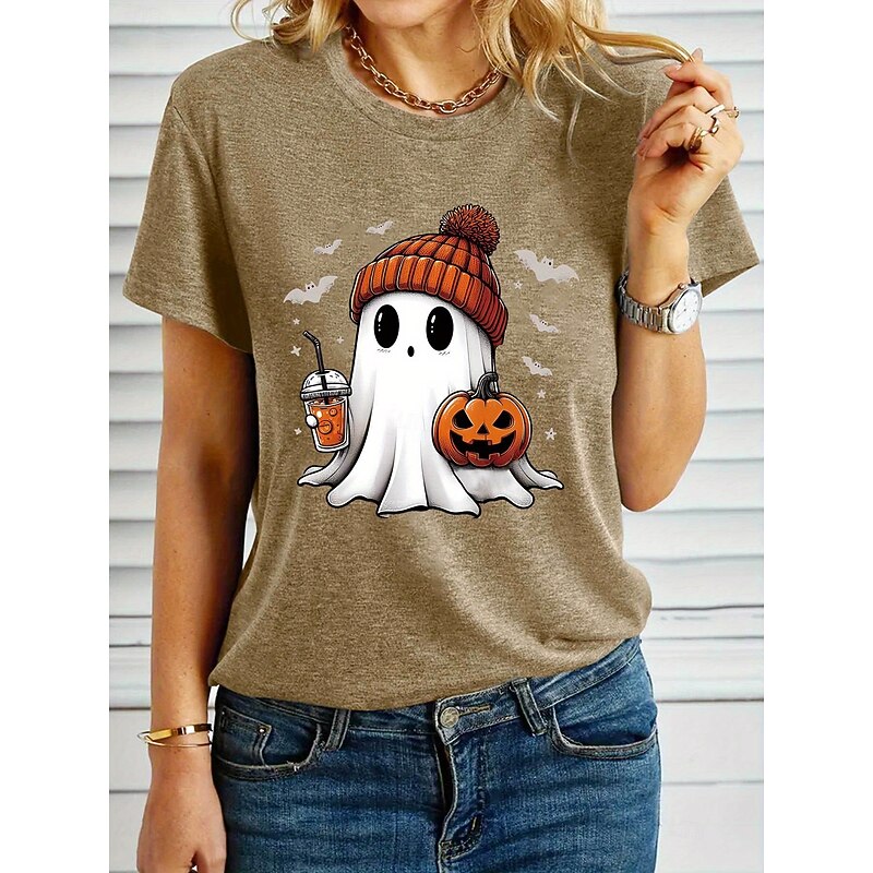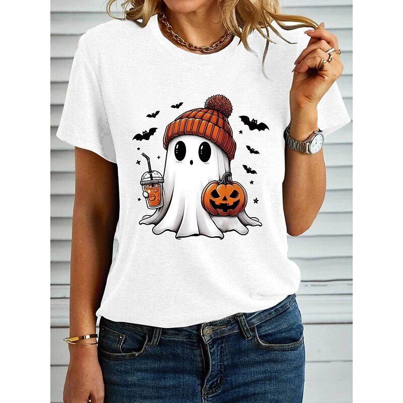 HOT ! Halloween Women's T shirt Ghost Graphic Pumpkin Vintage Stylish Classic Short Sleeve Crew Neck Regular Tops Daily Weekend Print Black White Blue Purple Green Summer Fall