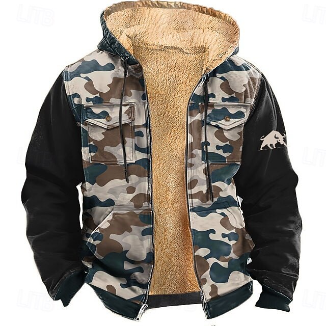 More information about Men's Camo Camouflage Fleece Hoodie Jacket Fashion Cool Hooded Hunting Blue Brown Zipper Pocket Fall Winter Designer