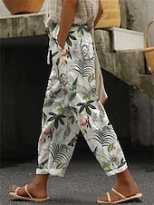 More information about Women's Pants Trousers Straight Streetwear Casual Long High Waist Heart Floral Leaf Pocket Printing Elastic Drawstring Design Breathability Soft Micro-elastic Vacation Street Daily Wear White Red