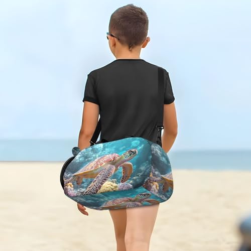 Sea Turtle Kids Duffle Bag,Sports Gym Bag with Shoe Compartment Travel Duffel Bags for Boys and Girls 4