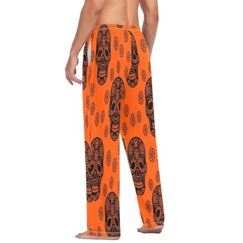 HOT ! Qilmy Black Sugar Skulls Men's Cotton Pajama Pants, Lightweight Lounge Sleepwear with Drawstring and Pocket