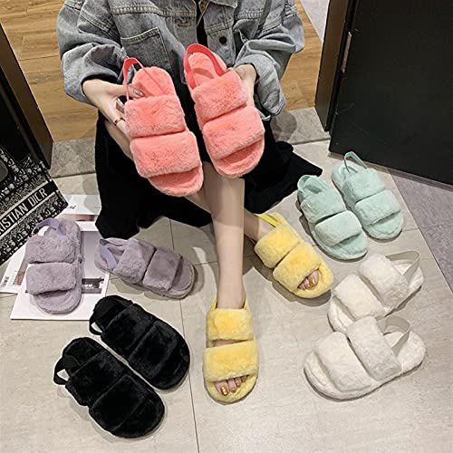 Cute Slippers Open Toe House Slippers Slides Sandals Two Band Fluffy Slippers with Strap Outdoor Sandal Slippers Non-Slip Slide Houseshoes Memory Foam Slippers (D 4 6