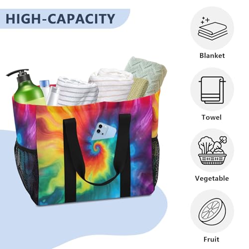 Tie Dye Reusable Grocery Bags Large Tote Bag Waterproof Canvas Organizer for Beach Picnic Laundry Travel 4