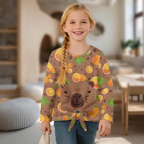Long Sleeve Shirt for Girls Kids Cute Tie Knot Front Tops Printed Casual Tees Crewneck Shirts Blouse Fall Outfits 6