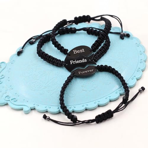 HOT ! 3 Pcs Puzzle Heart Piece Bracelet Set,Handmade Braided Black String Wrist Matching Puzzle Bracelets Adjustable Rope Friendship Gifts Jewelry for Best Friends Sisters
