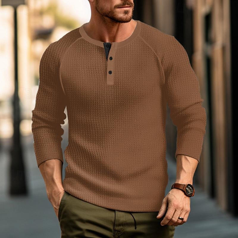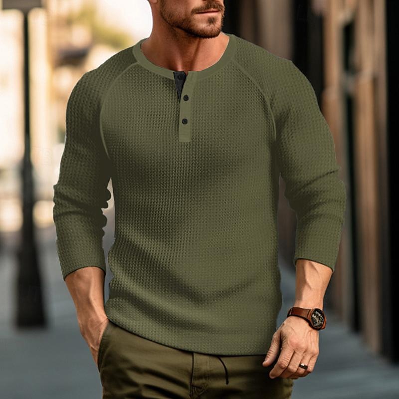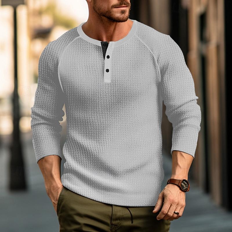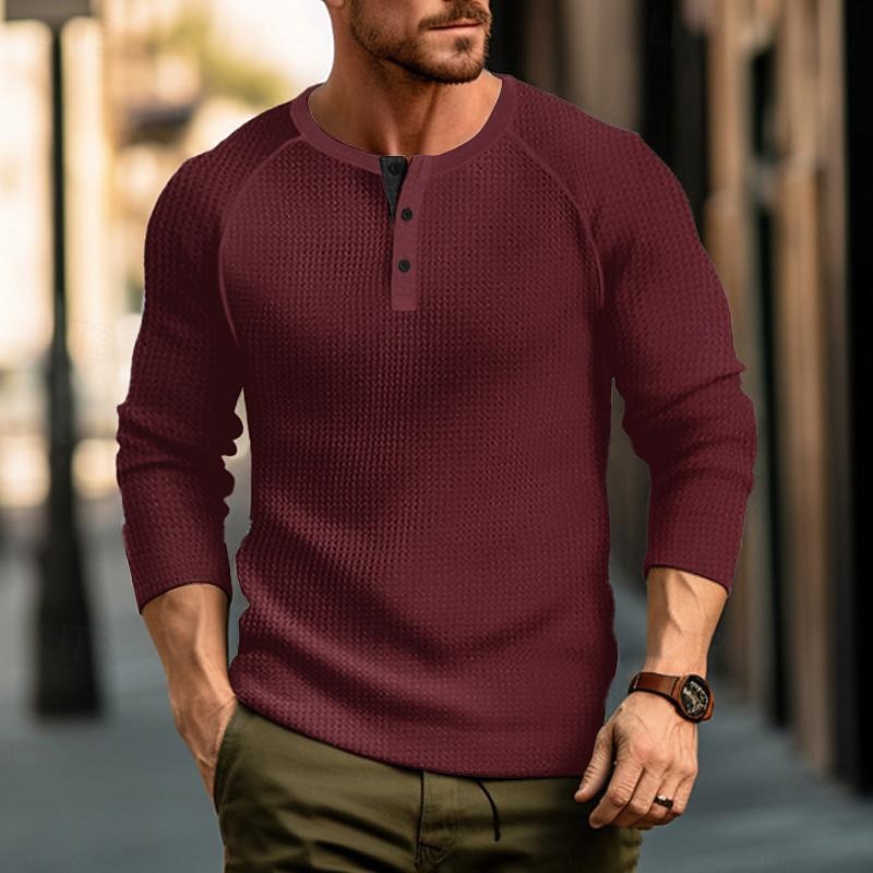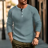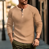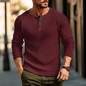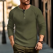 More information about Men's Waffle Tee Button T Shirt T Shirt Henley Shirt Long Sleeve Henley Spring & Fall Plain Raglan Sleeve Fashion Designer Basic Vacation Street Going out Black White Wine Top Tee for Men