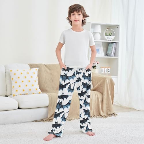 HOT ! Boys' Pants Blue Black Doodle Bats Long Bottoms Jogger Pants Elastic Waist Trousers with Pockets S-XL