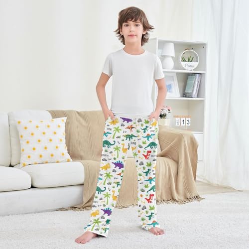 Colorful Dinosaurs Roar Boys Long Pants Soft Trousers Elastic Waist Kids Lounge Bottoms with Pockets S-XL 5