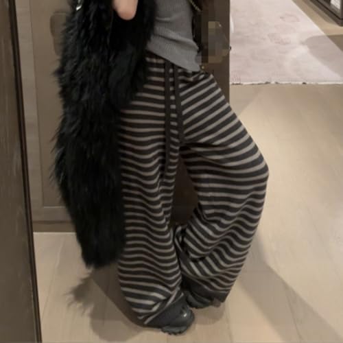 HOT ! Alternative Drawstring Wide Leg Baggy Pants Streetwear Striped Knit Lounge Pants Women
