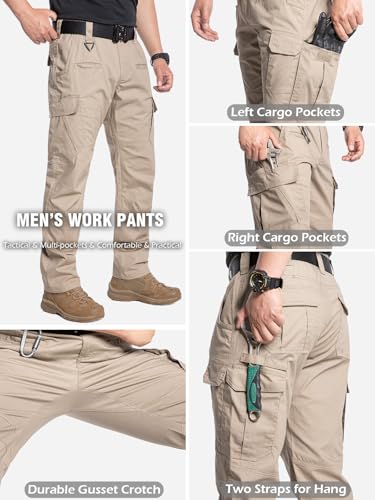 • [Practical 12 Pockets] The tactical pants designed with multi-function 12-pockets, allow carrying various tactical tools and work equipment of different size, keep you prepared for anything. 2 deep slanted pockets with strengthened gussets; 2 phone pockets; 2 Large rear pockets with 2 small pockets for easy take in & out; 3 roomy thigh cargo pockets, provide ample storage for phone and tools. The loop design to hang the big tool.
