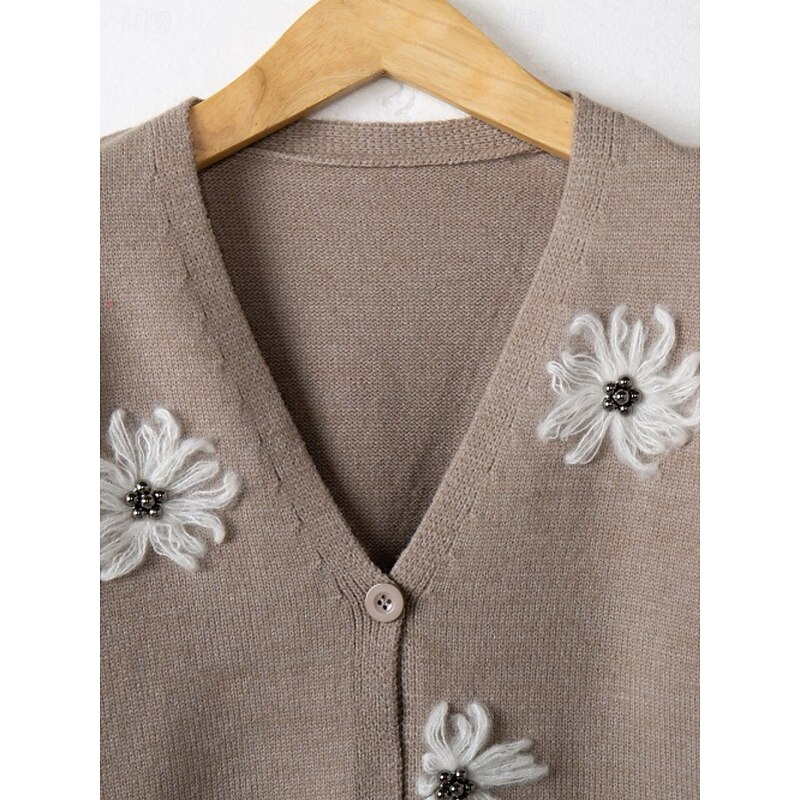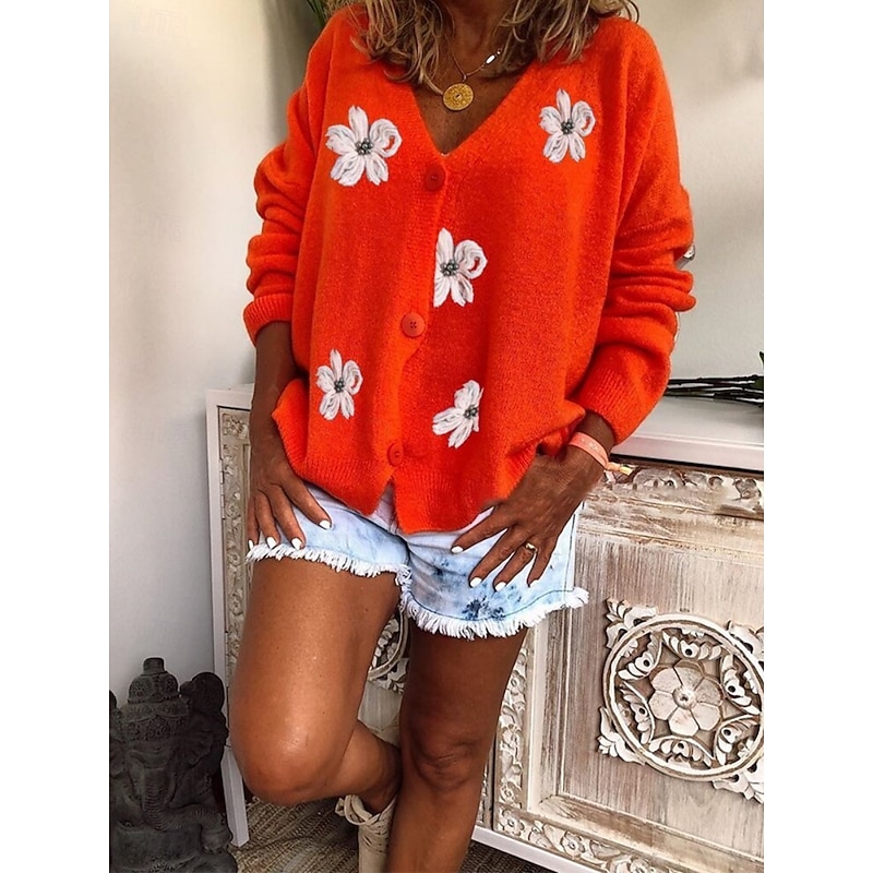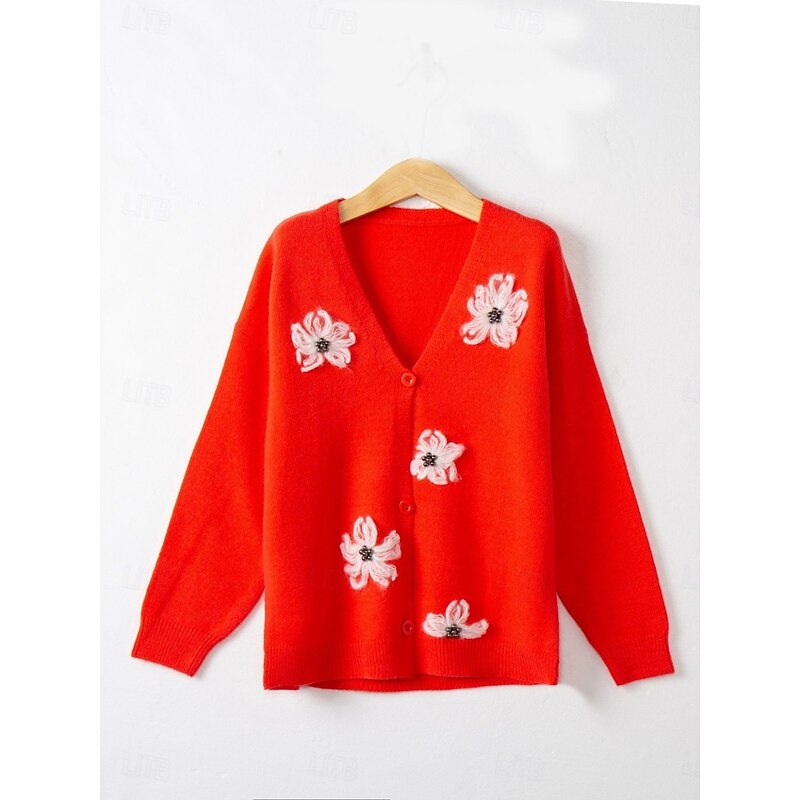 HOT ! Women's Sweater Cardigan Casual Soft Floral Ribbed V Neck Buttons Knitted Long Sleeve Regular Tops Knit Outdoor Daily Weekend Red Green Fall Winter