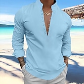 More information about Men's Shirt Linen Shirt Popover Shirt Summer Shirt Beach Wear Plain Vacation Curise Black White Blue Sky Blue Long Sleeve Stand Collar Spring & Summer Clothing Apparel
