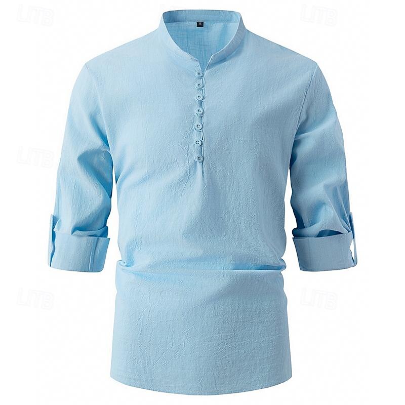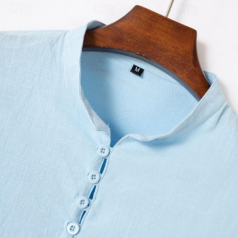 Men's Shirt Linen Shirt Popover Shirt Summer Shirt Beach Wear Plain Vacation Curise Black White Blue Sky Blue Long Sleeve Stand Collar Spring & Summer Clothing Apparel 15
