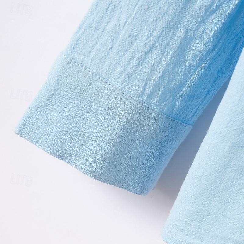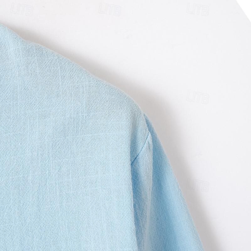 Men's Shirt Linen Shirt Popover Shirt Summer Shirt Beach Wear Plain Vacation Curise Black White Blue Sky Blue Long Sleeve Stand Collar Spring & Summer Clothing Apparel 8