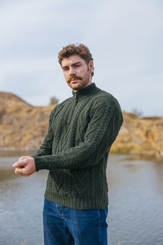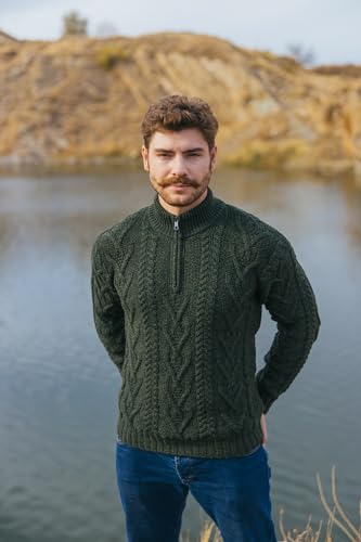 SAOL 100% Merino Wool Mens Zip Neck Sweater Irish Fisherman Cable Knit Winter Outdoor Pullover Aran Jumper 6