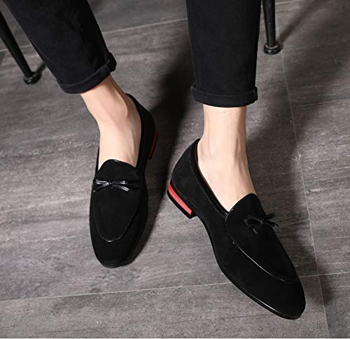 Santimon Mens Dress Shoes Smoking Slippers Casual Bow Slip-on Suede Flats Penny-Loafers Black Brown Tan 6