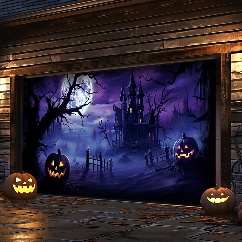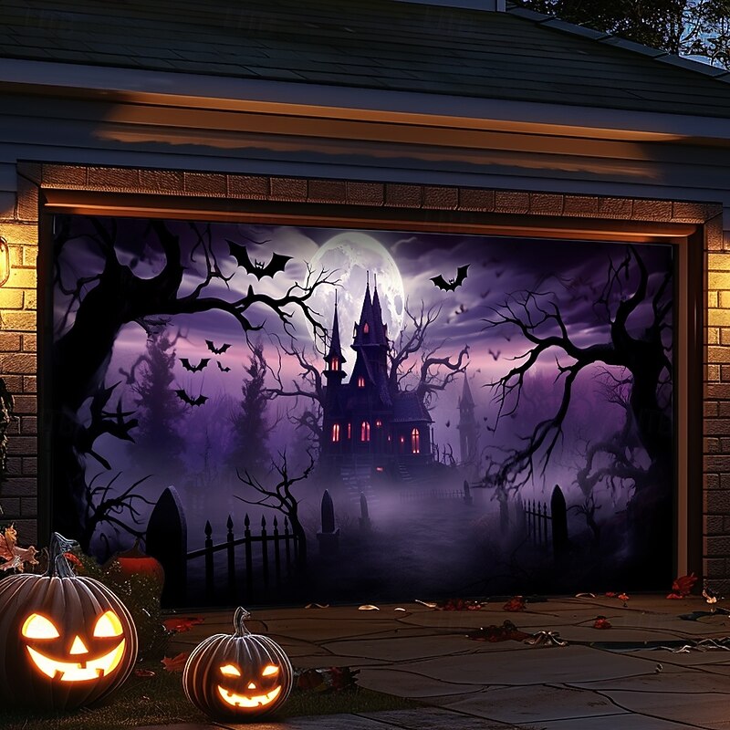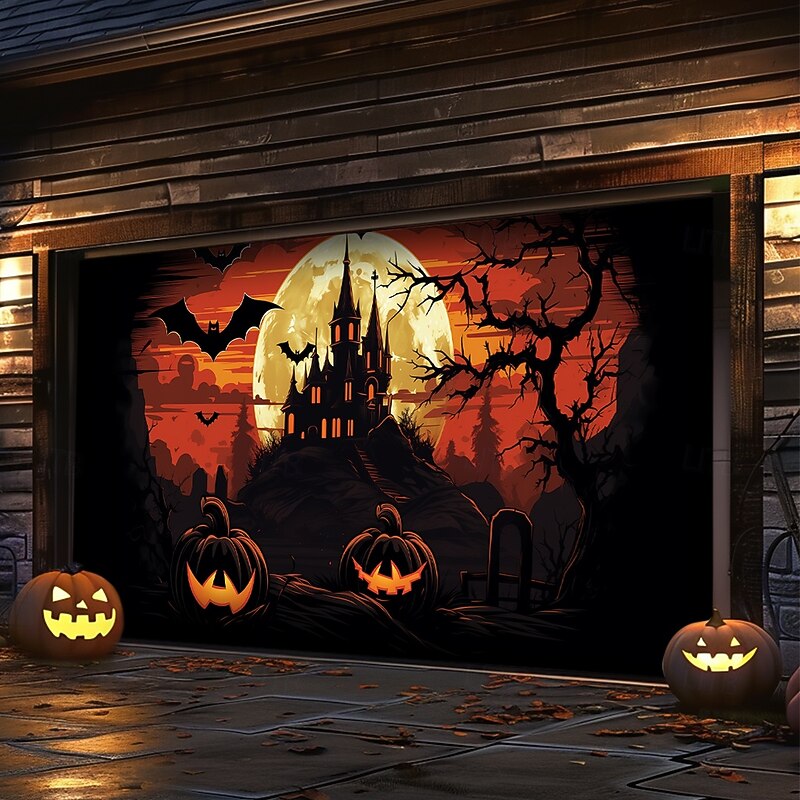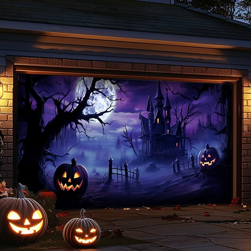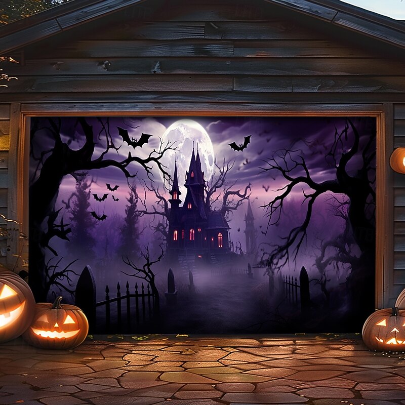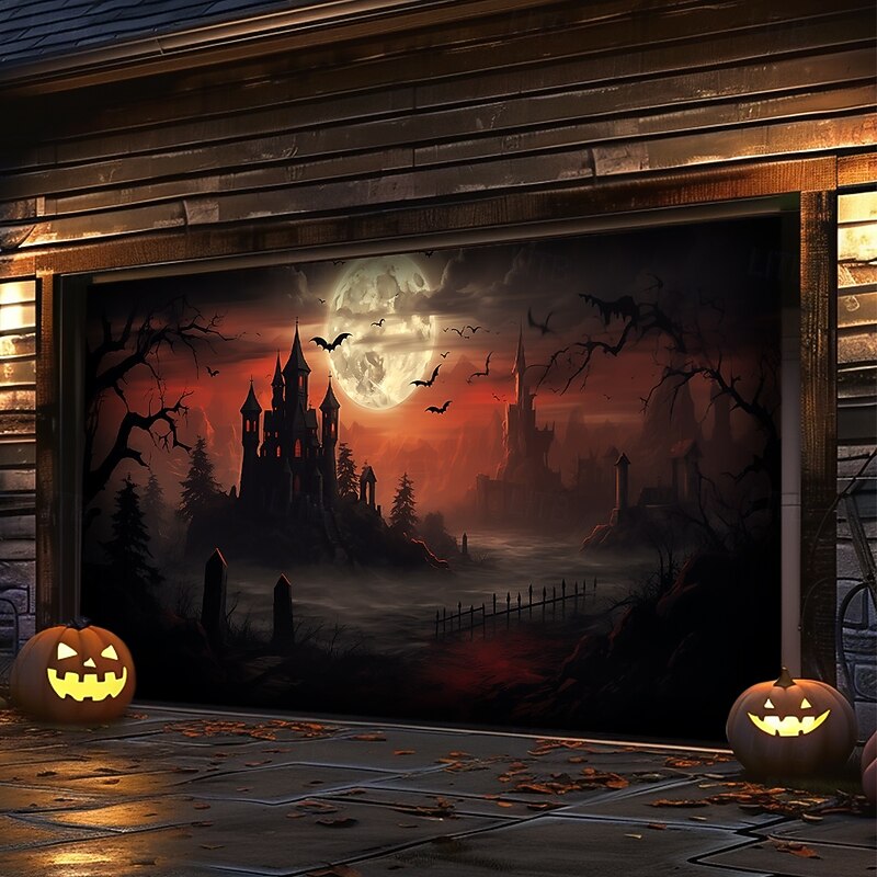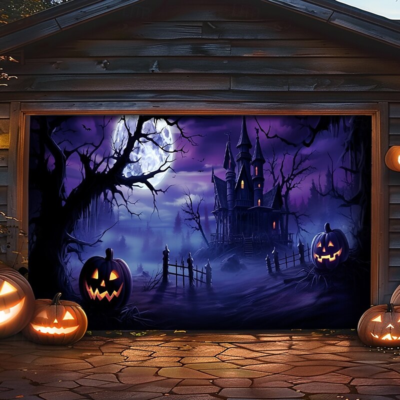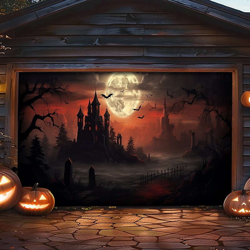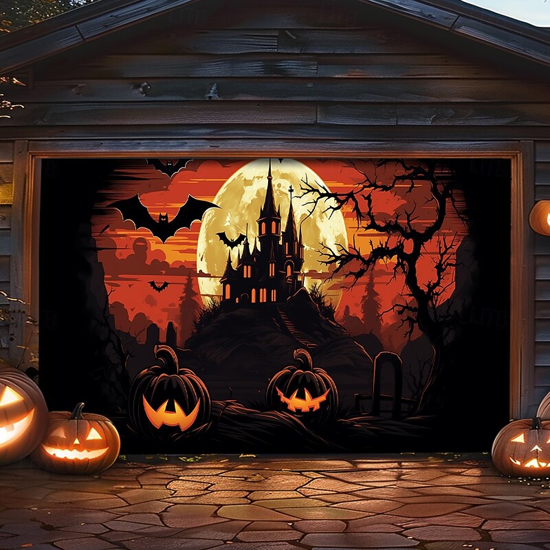 : Perfect for outdoor use on garages, large walls, or any broad surface, this tapestry adds a festive and spooky flair to your Halloween setup.