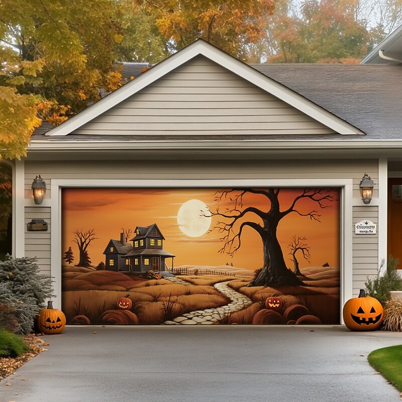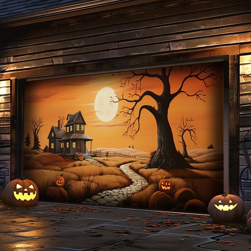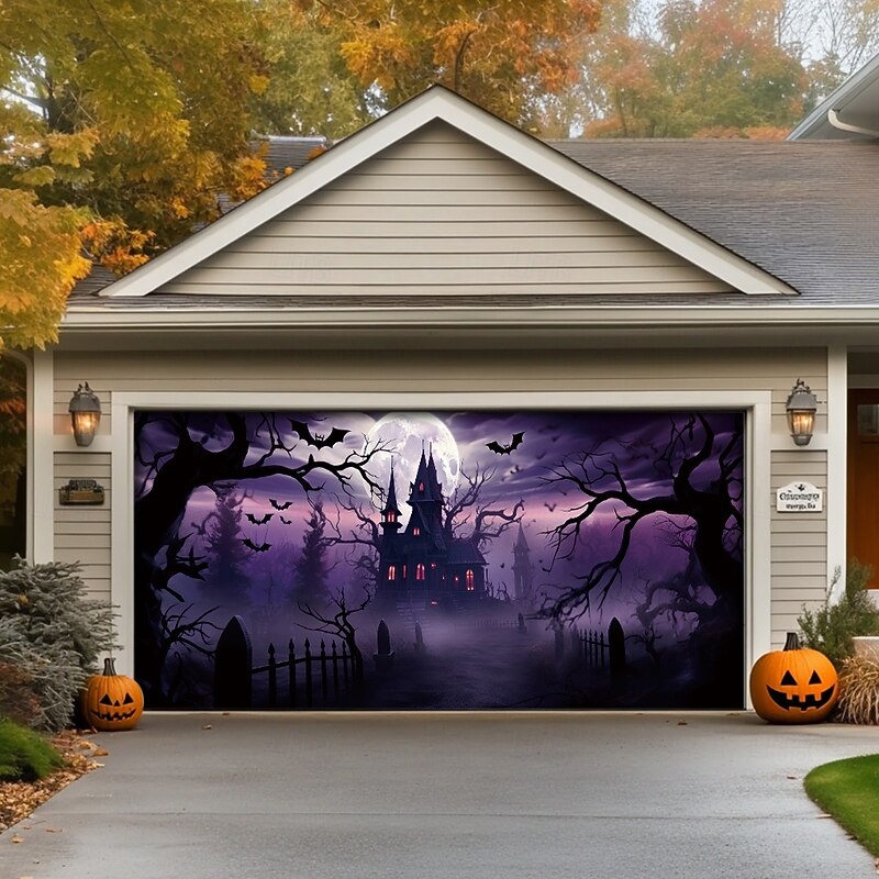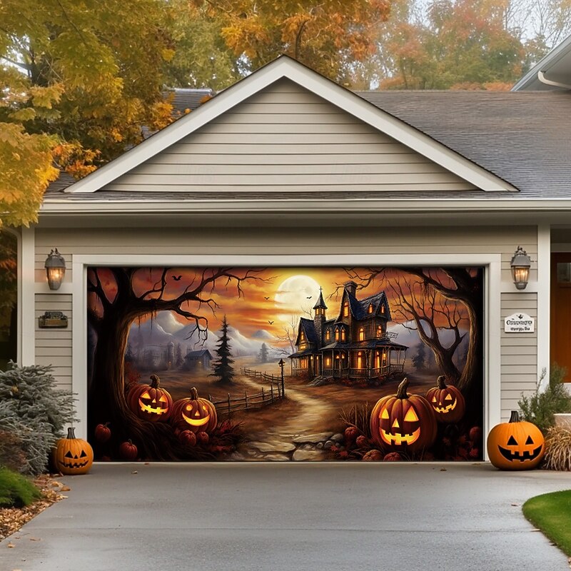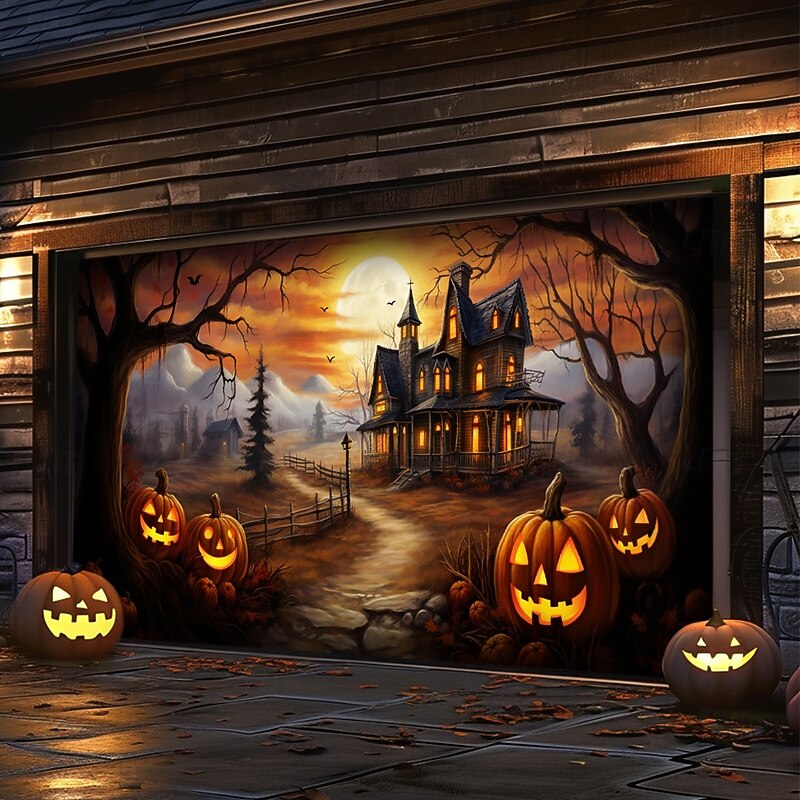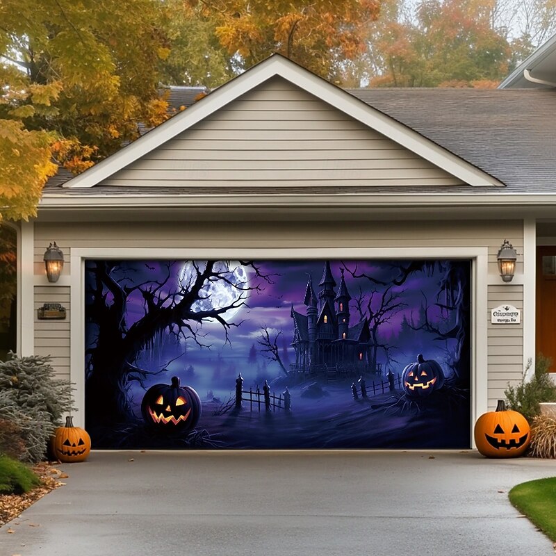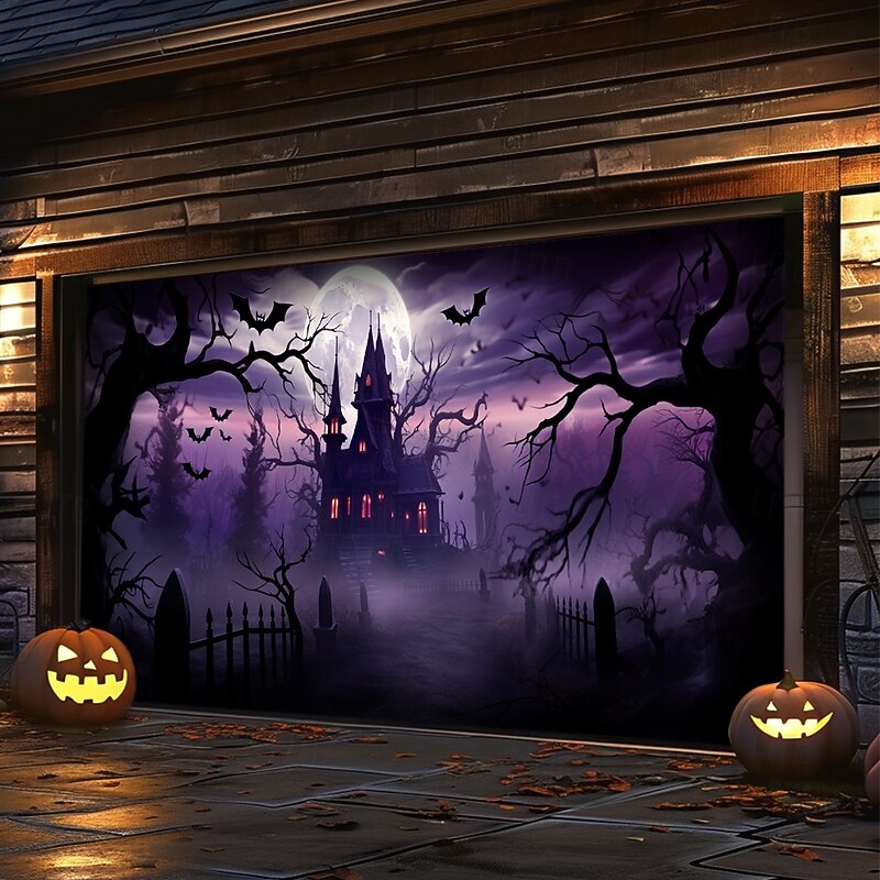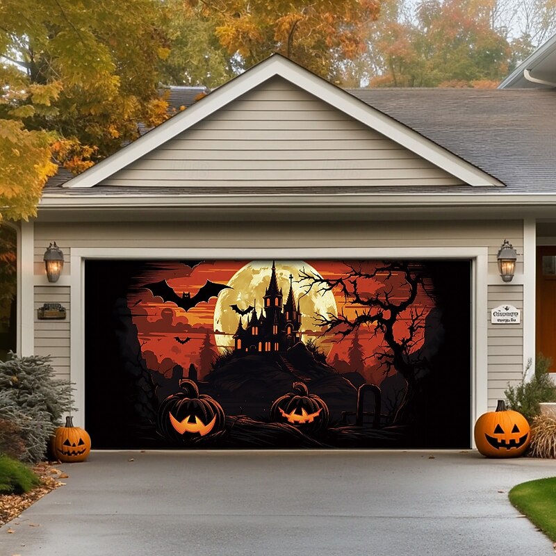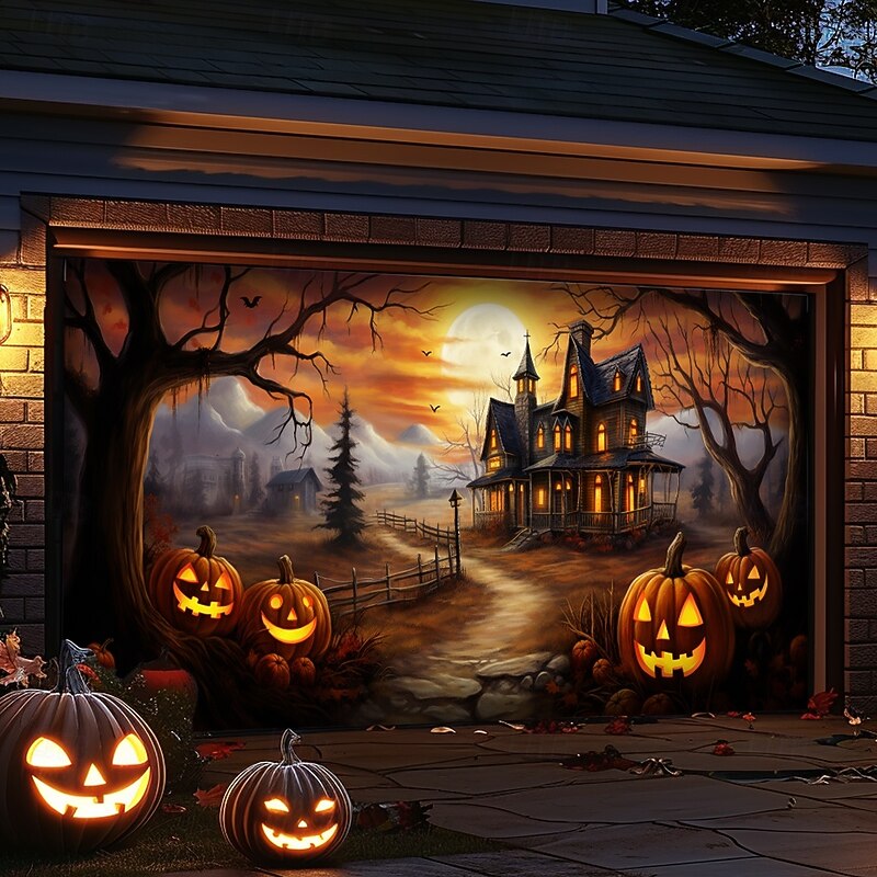 : Perfect for outdoor use on garages, large walls, or any broad surface, this tapestry adds a festive and spooky flair to your Halloween setup.
