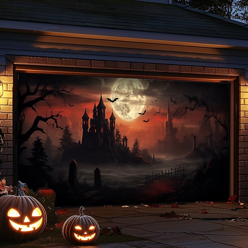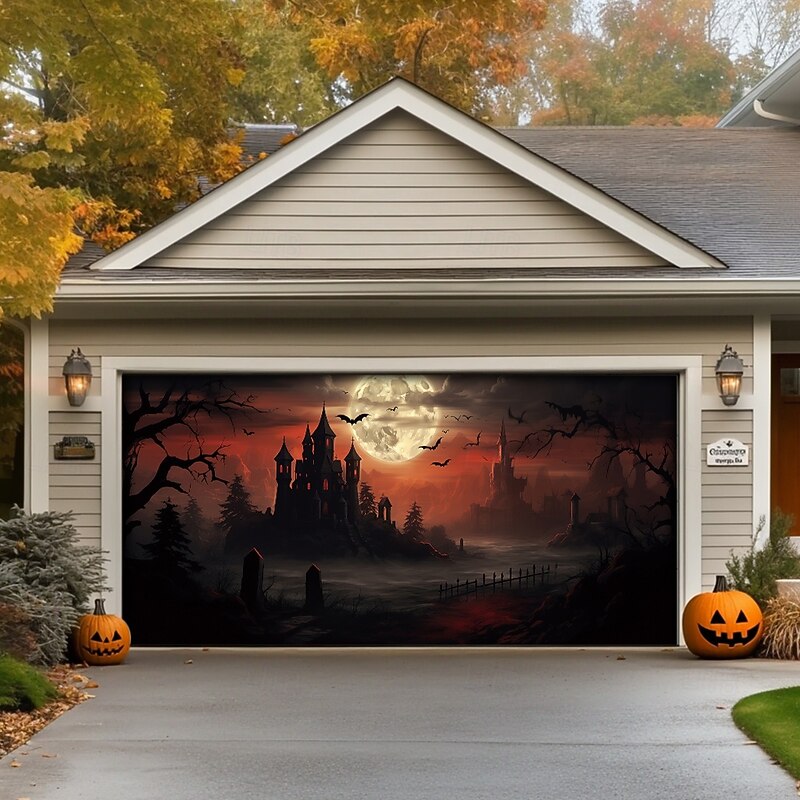 : Sized to cover most garage doors or expansive wall areas, this large tapestry ensures a dramatic and eye-catching Halloween display.