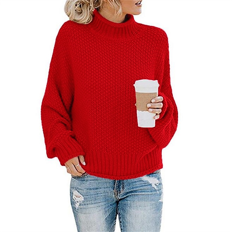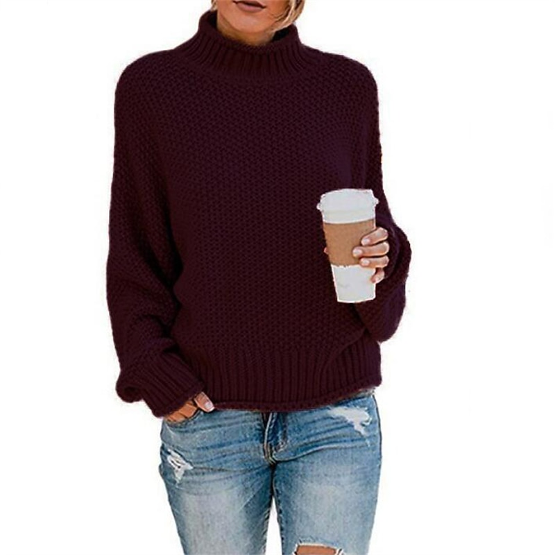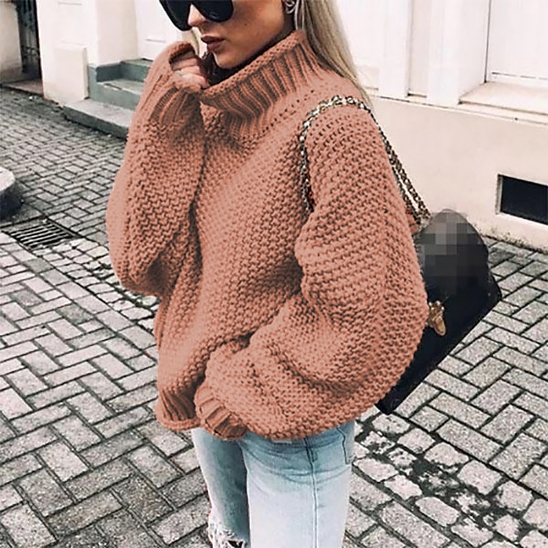 Highlights [Fabric] : Crafted from high-quality acrylic, this women's pullover sweater jumper features a chunky crochet knit that offers both warmth and a textured look. Its thick knit fabric ensures a cozy feel, making it ideal for colder months. [Fit Type] : This sweater boasts an oversized fit, with a loose silhouette that enhances comfort and versatility. The dropped shoulders contribute to a relaxed, laid-back appeal, ensuring it complements a variety of body types while providing ease of movement. [Design Highlights] : The sweater is designed with a timeless turtleneck, providing both warmth and style. Ribbed detailing on the turtleneck, cuffs, and hem adds structure, while maintaining the overall relaxed aesthetic. The solid color palette offers a classic yet modern look, easily pairing with different outfit styles. [Occasions] : Perfect for daily wear, this casual pullover is suitable for going out and making a subtle style statement. It can be effortlessly paired with jeans or leggings, making it a versatile choice for fall and winter days. [Size Range] : Available in a variety of sizes from S to XXL, this sweater caters to different body shapes and preferences, ensuring a comfortable fit for many.
