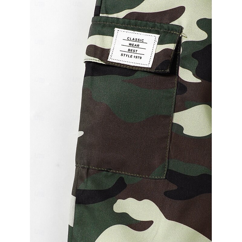 2 Pieces Toddler Boys T-shirt & Shorts Outfit Camo Short Sleeve Crewneck Set School Fashion Daily Summer 4-7 Years Army Green 7
