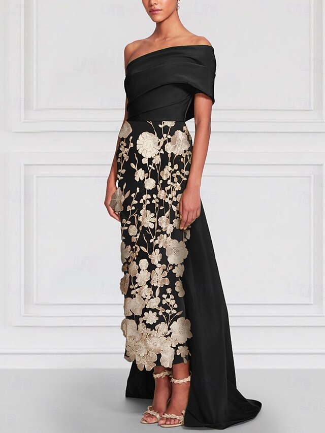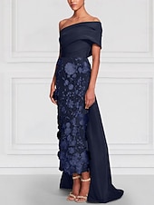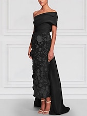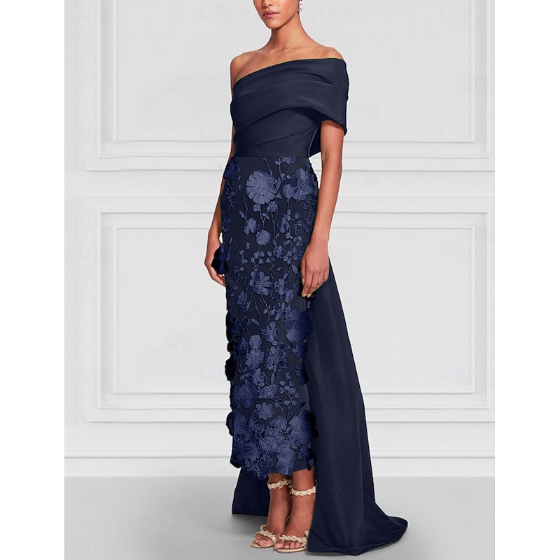More information about Embroidered Lace Applique Sheath / Column Cocktail Dresses Elegant Dress Formal Wedding Tea Length Sleeveless Off Shoulder Taffeta with Bow(s) 2025