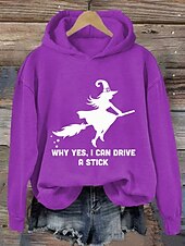 More information about Halloween Women's Pullover Hoodie Sweatshirt Witch Graphic Fashion Casual Print Long Sleeve Hooded Regular Tops Street Dailywear Casual Drawstring Print Black Purple Orange Green Fall Winter