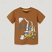 Kids Boys T shirt Tee Cartoon Short Sleeve Crewneck Children Top Outdoor Basic Summer Brown 4 years+ 1