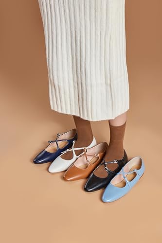C. Paravano Women's Mary Jane Ballet Flats - Adjustable Buckle Strap,Soft Leather Almond Toe Flats for Work,Casual, Daily Wear, Wedding, Church, Office, and Travel and Driving-Stylish Women's Shoes 5