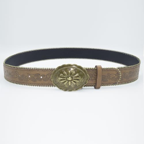 HOT ! Western Belt for Women Cowgirl Cowboy PU Leather Belts for Jeans, Floral Embossed Vintage Buckle