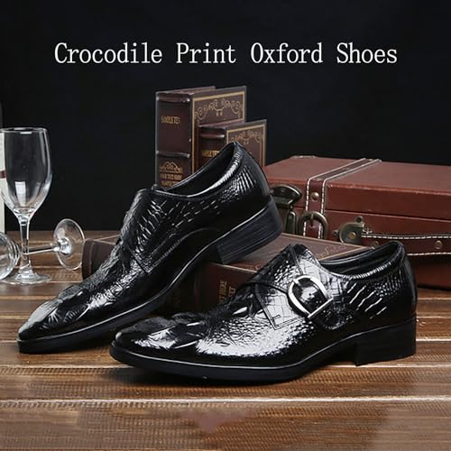 Men's Crocodile Print Oxford Shoes,Comfort Slip on Dress Loafers Monk Strap,Vintage Fashion Pointed Toe Buckle Chunky Formal Leather Shoes 6