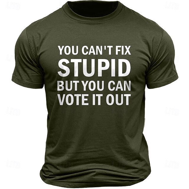 Men's T-Shirt 'You Can't Fix Stupid But You Can Vote It Out' Political Slogan Graphic Short Sleeve Tee 1