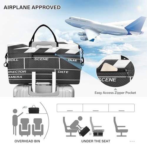 Blank Cinema Movie Clapboard Large Travel Duffle Bag Weekender Overnight Bags Gym Yoga Bag for Women Men with Toiletry Bag 7