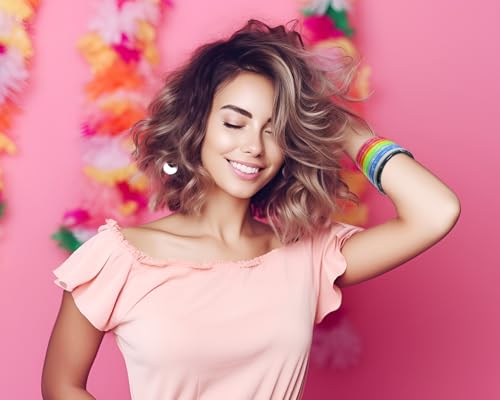 • Package includes random 8 colors neon color retro acrylic bracelets