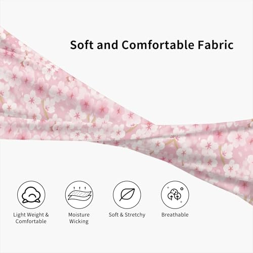 Boys Girls Sports Sweat Band, Multipurpose Long Head Ribbon for Sports Workout Spa, Fashion Spring Pink Blossom Trees Cherry Flowers Art Headdress Hand Decor 5