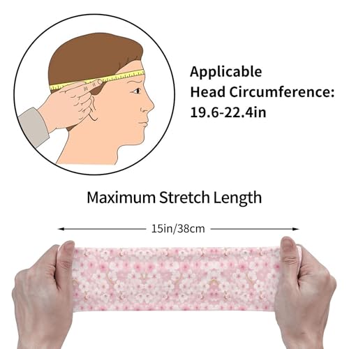 Boys Girls Sports Sweat Band, Multipurpose Long Head Ribbon for Sports Workout Spa, Fashion Spring Pink Blossom Trees Cherry Flowers Art Headdress Hand Decor 7