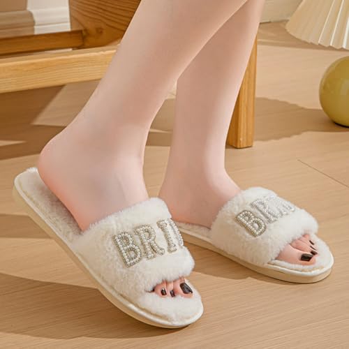 Bride Slippers for Wedding White Letter Pearls Bride To Be Slippers for Bridal Shower Bachelorette Hen Wedding Party 1