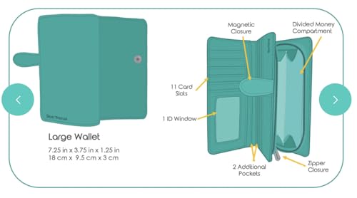 More information about Shag Wear Monarch Butterfly Migration Large Wallet for Women and Teen Girls Vegan Faux Leather Mint Green 7"