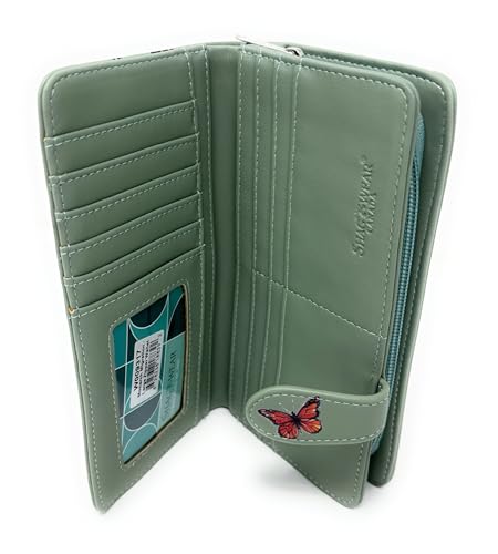 Shag Wear Monarch Butterfly Migration Large Wallet for Women and Teen Girls Vegan Faux Leather Mint Green 7" 5