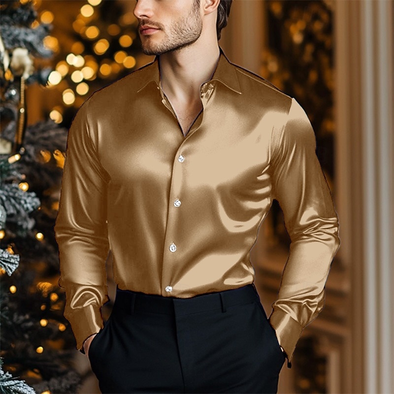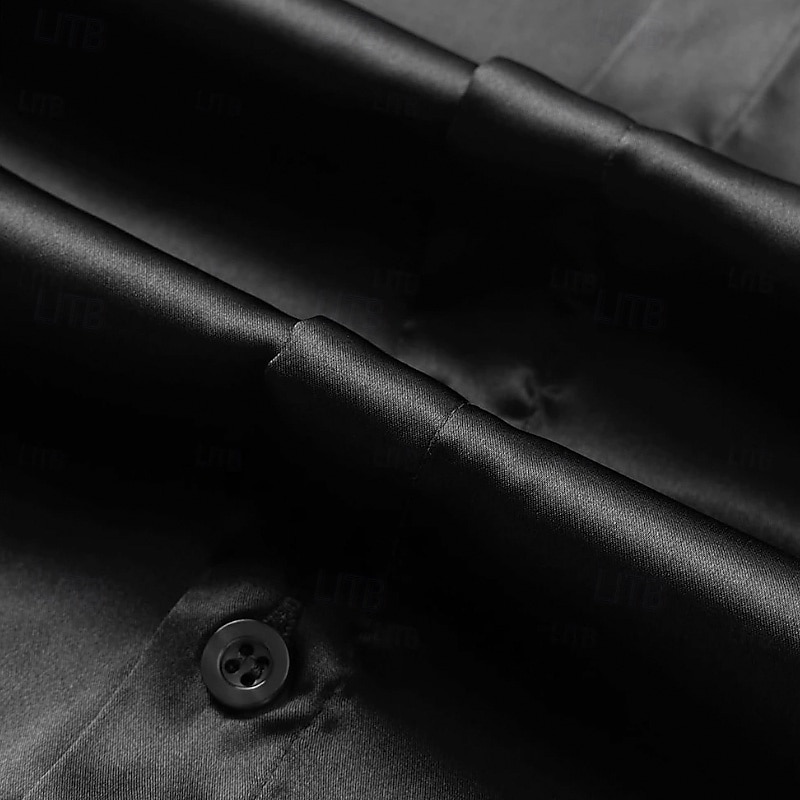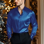 More information about Men's Shirt Satin Shirt Casual Shirt Button Up Shirt Plain Wedding Vacation Light Blue Black Wine Royal Blue Long Sleeve Lapel Spring & Fall Clothing Apparel