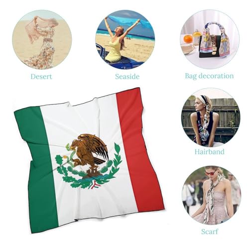 Flag of Mexico Silk Head Scarf Women's Fashion Lightweight Square Scarfs Bandanas Breathable Soft Neck Head Scarves For Travel Handbags Scarf 7