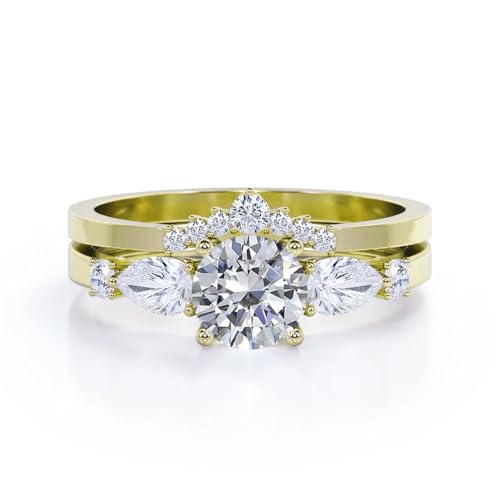Moissanite Bridal Sets Wedding Rings 1CT Center Round Cut Wedding Ring Sets 10K 14K 18K Gold Platinum Plated Engagement Ring Sets for Her 1